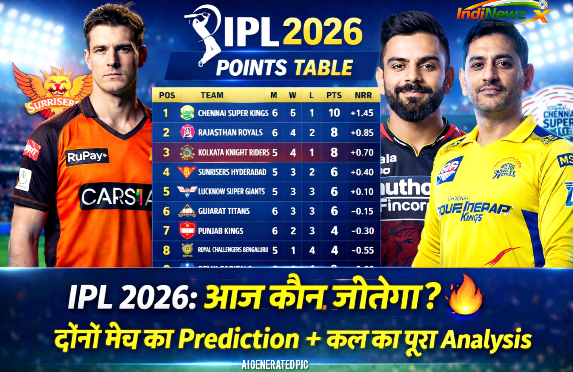 IPL 2026: आज कौन जीतेगा? दोनों मैच का Prediction ,कल का पूरा Analysis”and point table